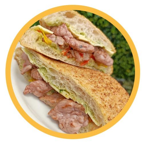 Crujiente chapata con jugosa arrachera, pimientos confitados y mix de queso. Acompáñala con unas deliciosas papas gajo o espiral.